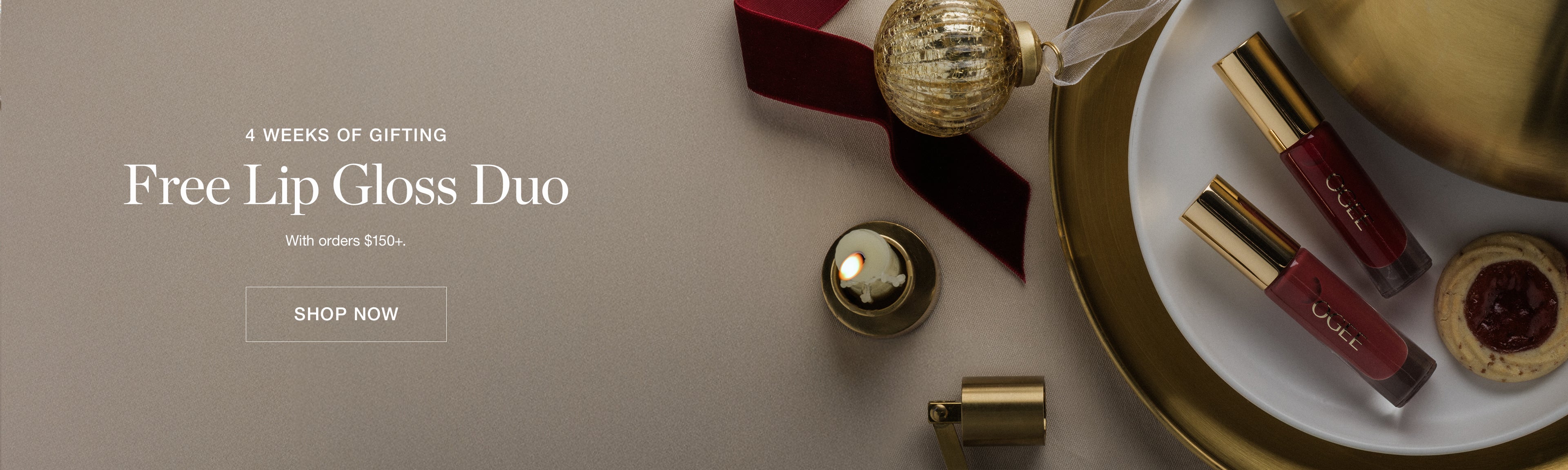 Free Lip Gloss Duo on all orders over $150 USD. While supplies last.