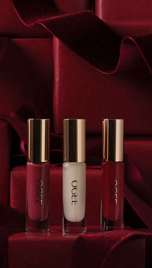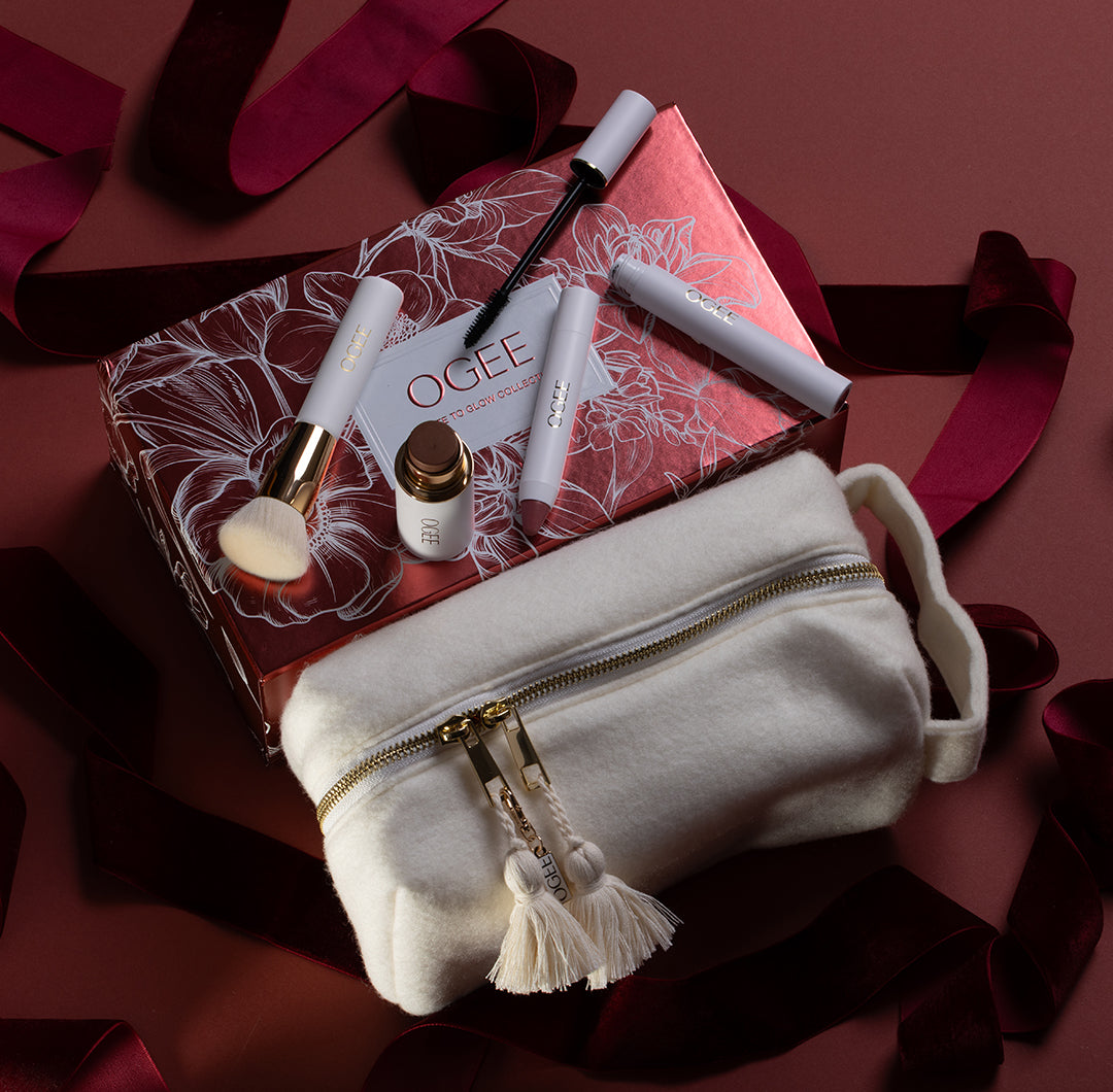 A four-piece set including our best-sellers for eyes, lips, and cheeks, wrapped in a chic, ready-to-gift wool bag.